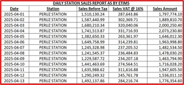 Please reach out to us and get our eTIMS integrated Fuel Management System, which enables the station owner or the oil company to monitor all the transactions data from the forecourt including the VAT component on each transaction electronically and in real time through automation of fuel dispensers.